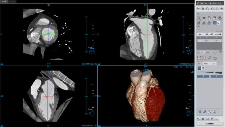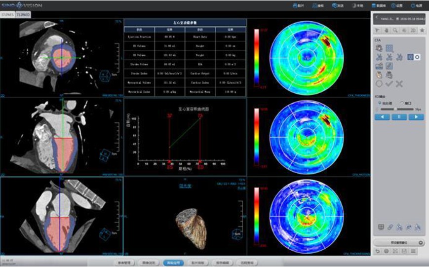 View heart images of each phase, execute three-dimensional reconstruction and heart extracted for CT heart images, and then view patient heart by more intuitive way, diagnosis various cardiovascular diseases.