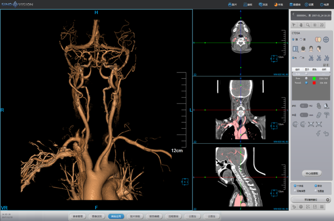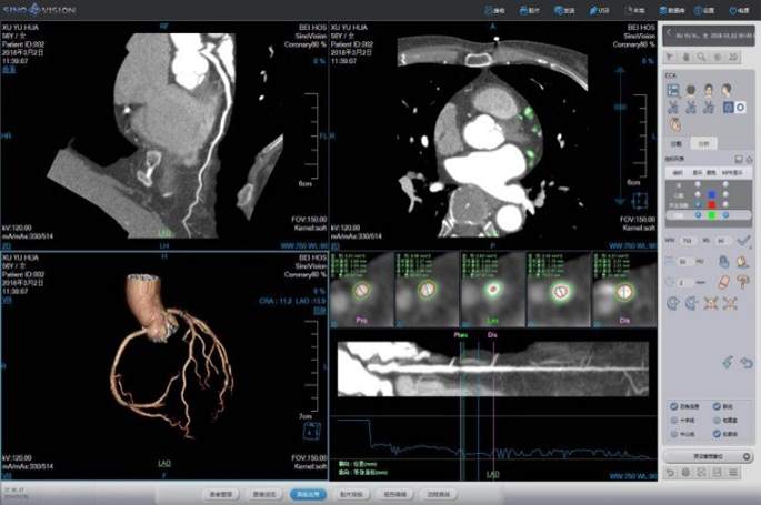 | Computer System | CPU : Intel Xeon 6 core, 12 threads, frequency 3.8GHz, cache 8.25MB RAM: ECC 32 GB Hard disk: 7TB (system disk 0.3 TB+ image ,disk 1.7TB + raw data disk 5TB) Monitor: Size: 24-inch, LCD, Resolution: 1920×1200, Brightness: 600cd/m2, Contrast: 1000:1 Images storage: ≥3,200,000 images (512×512) External storage: DVD/CD RW, USB Printing interface: DICOM 3.0 standard | |